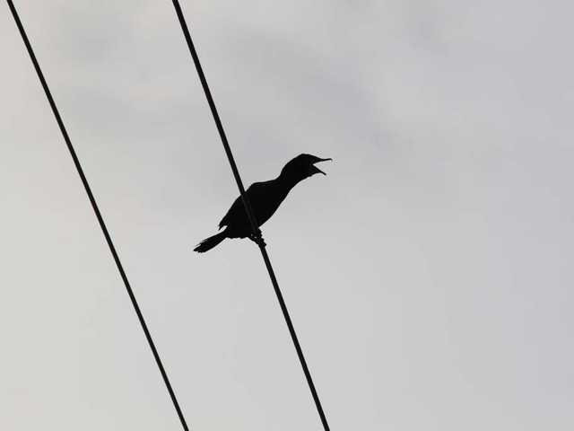 This bird was among about ten sitting on some power lines.